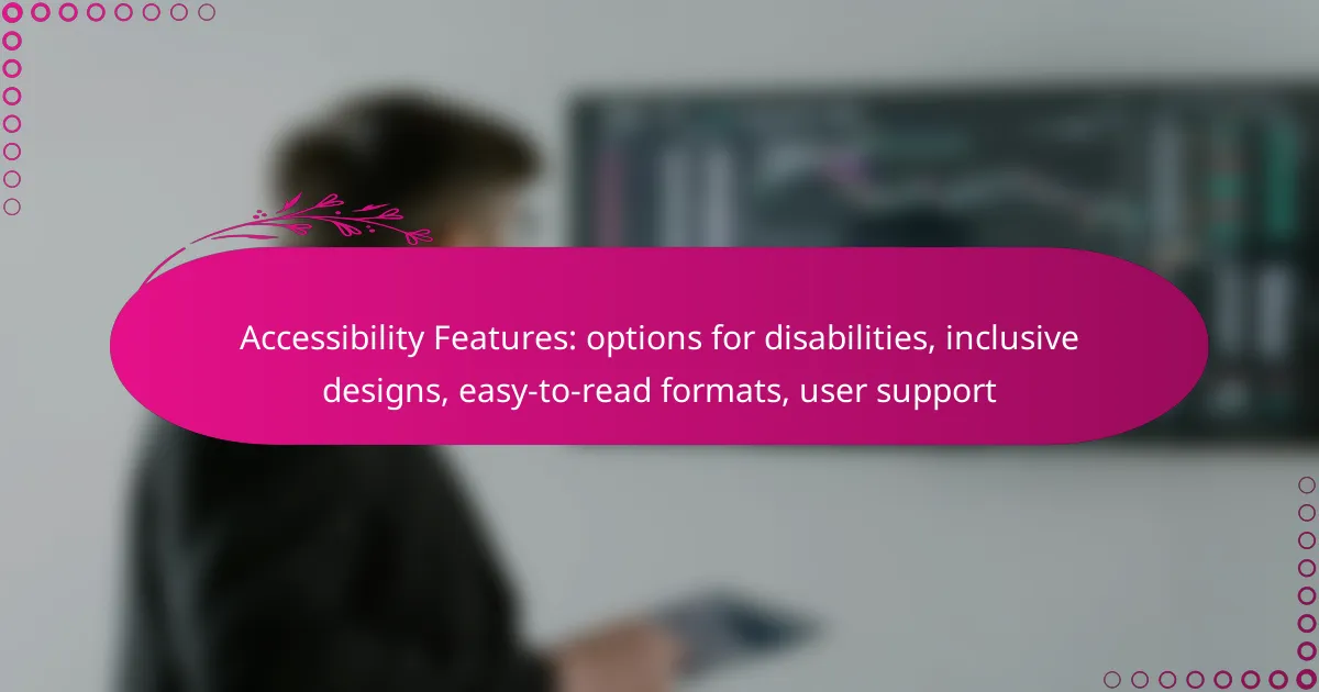 Accessibility features for disabilities are essential tools that enhance usability for individuals with various impairments, fostering an inclusive environment. By incorporating inclusive designs and easy-to-read formats, digital content becomes more accessible, ensuring that everyone can effectively engage with information and services. These thoughtful implementations not only improve user experience but also promote a sense of belonging for all users.