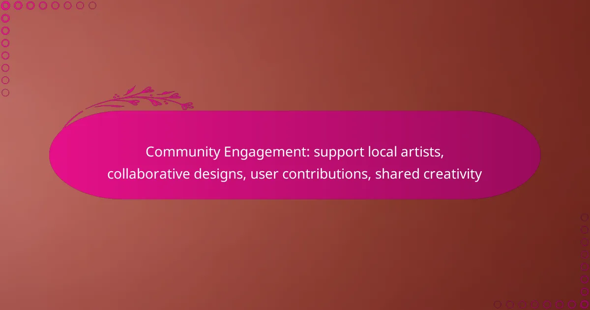 Community engagement plays a vital role in supporting local artists by fostering connections and collaboration. Through collaborative design tools and online platforms, artists can share their creativity, receive feedback, and work together in real-time, enriching the creative landscape. This collective effort not only enhances individual projects but also strengthens the community as a whole.