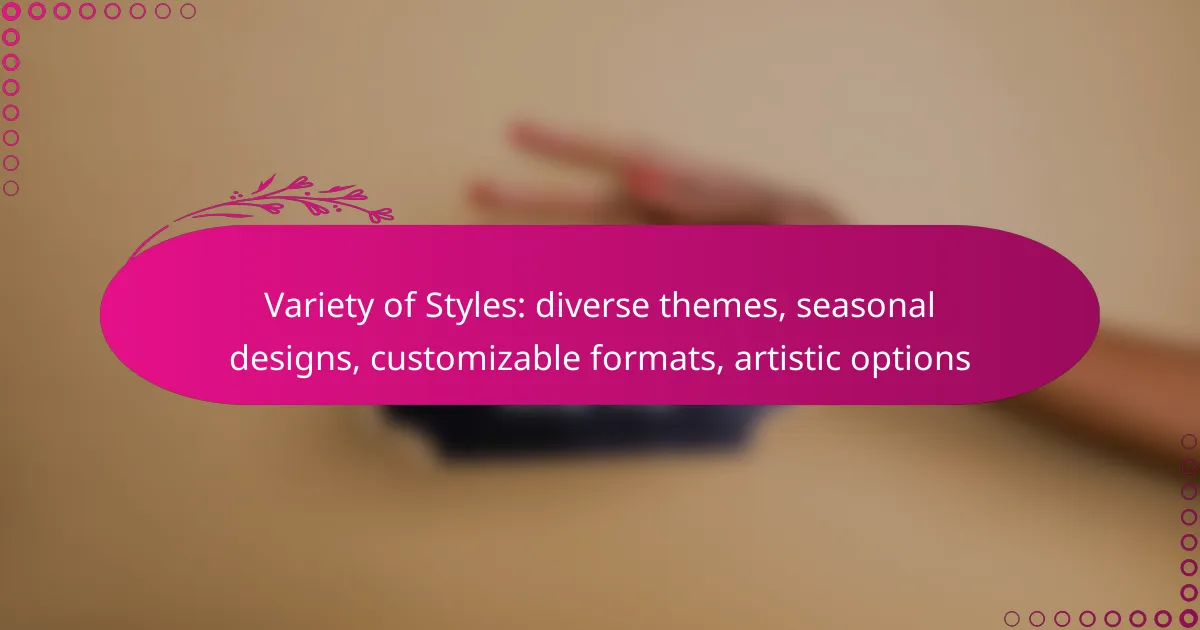 Exploring a variety of styles in design opens up a world of possibilities, from seasonal themes that capture the essence of each time of year to customizable formats that cater to individual preferences. By incorporating diverse artistic options such as vector illustrations and hand-drawn graphics, designers can create engaging and relevant projects that resonate with their audiences. This flexibility not only enhances aesthetic appeal but also fosters a more personalized user experience.